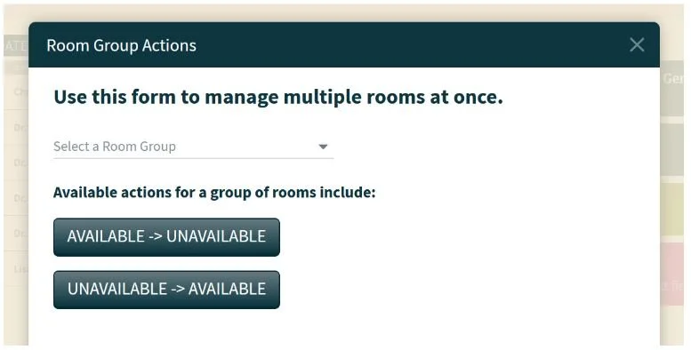 On the CHIME dashboard, selecting “Rooms” or “Pod” opens an interface that allows users to adjust the availability of multiple rooms at once. For example, clinics can set all rooms in “Pod B” to be unavailable.