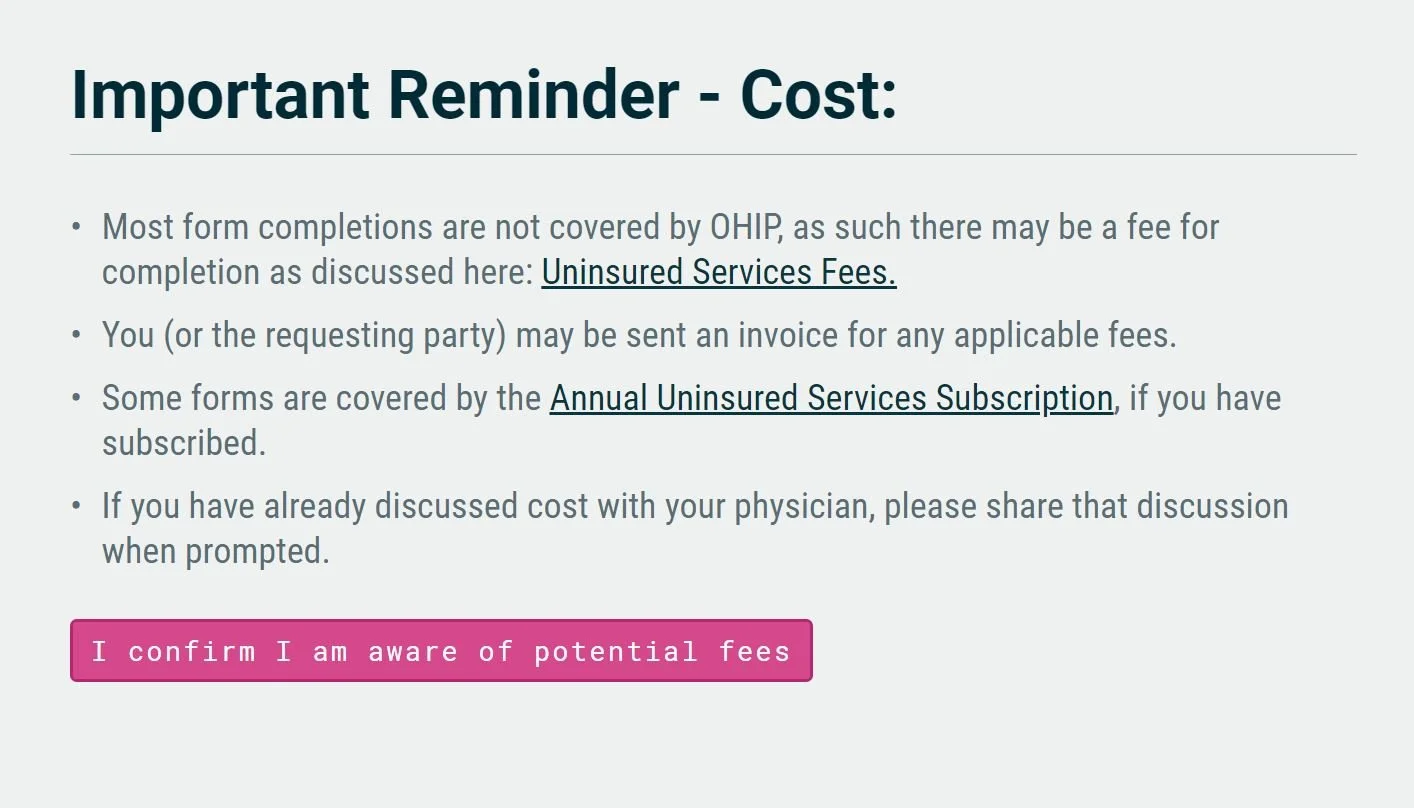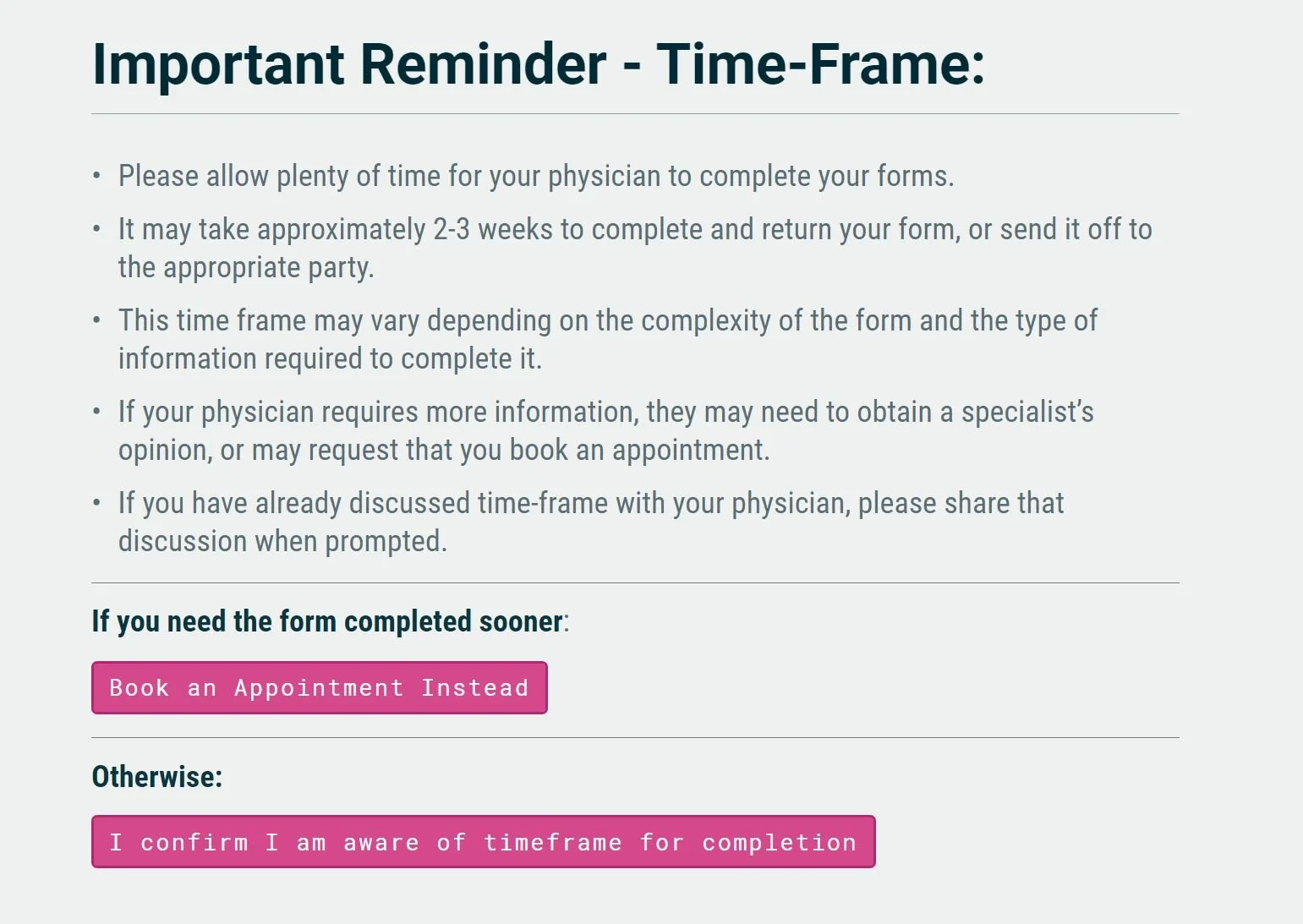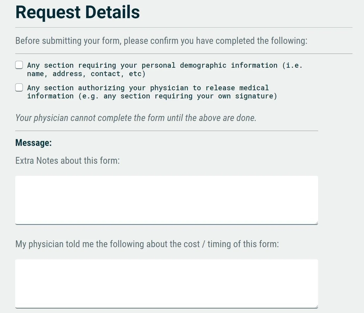 Our slide interface can be used to direct patients with instructions how to upload any forms that may need to be completed by their physician. The slide interface allows the clinic to require that the patient confirm to any costs, and clinic policies regarding the timeline for completion.