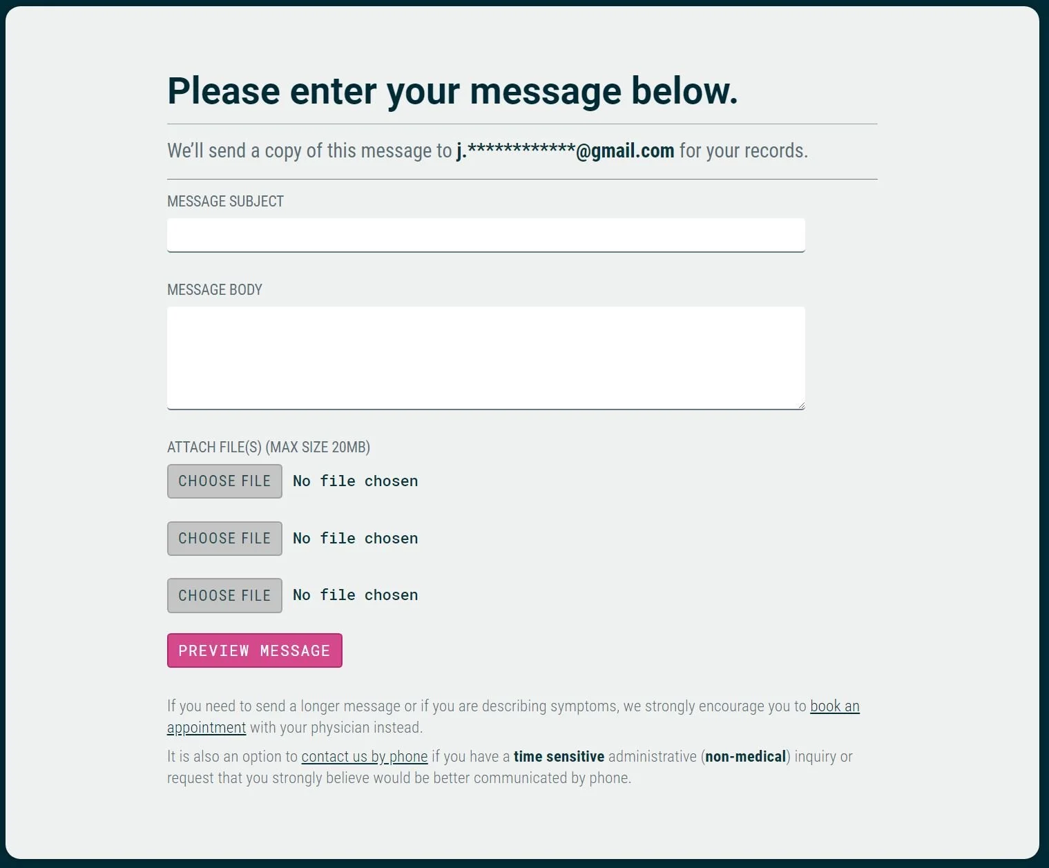 Once identity verification is complete, patients can provide specific details about their sick note request. They can type their message in a designated text box, including the ability to attach any pertinent documents that will assist their physician in processing the request efficiently.