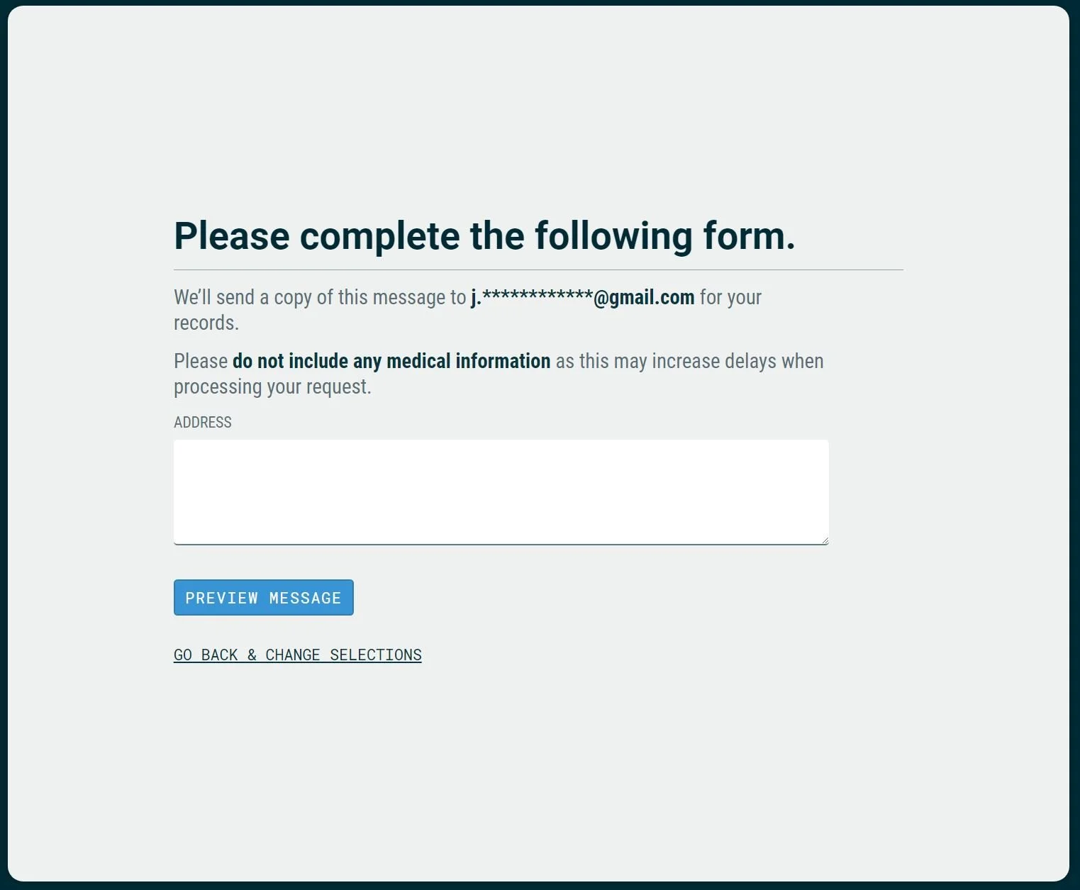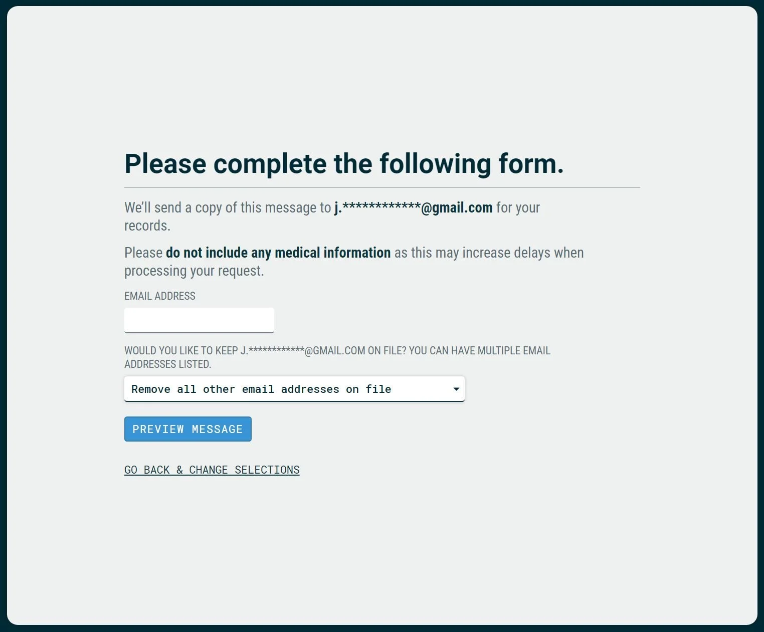 The patient can then review their message to confirm the details prior to submitting it to the clinic.