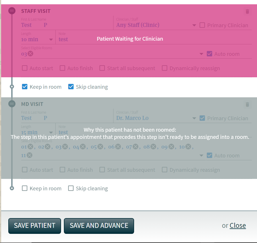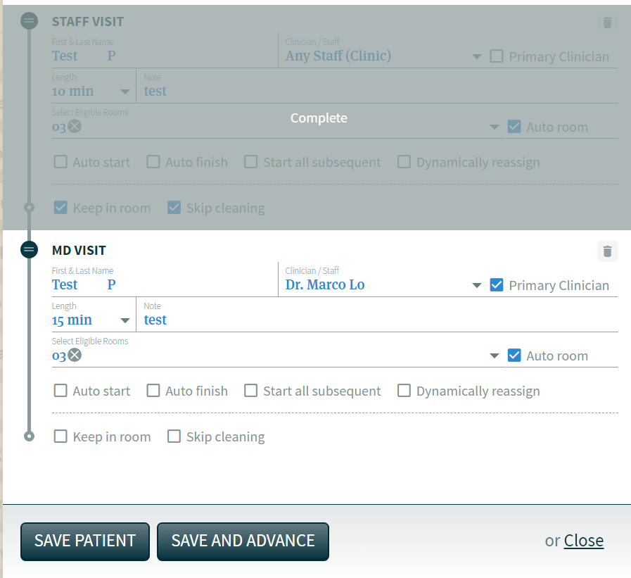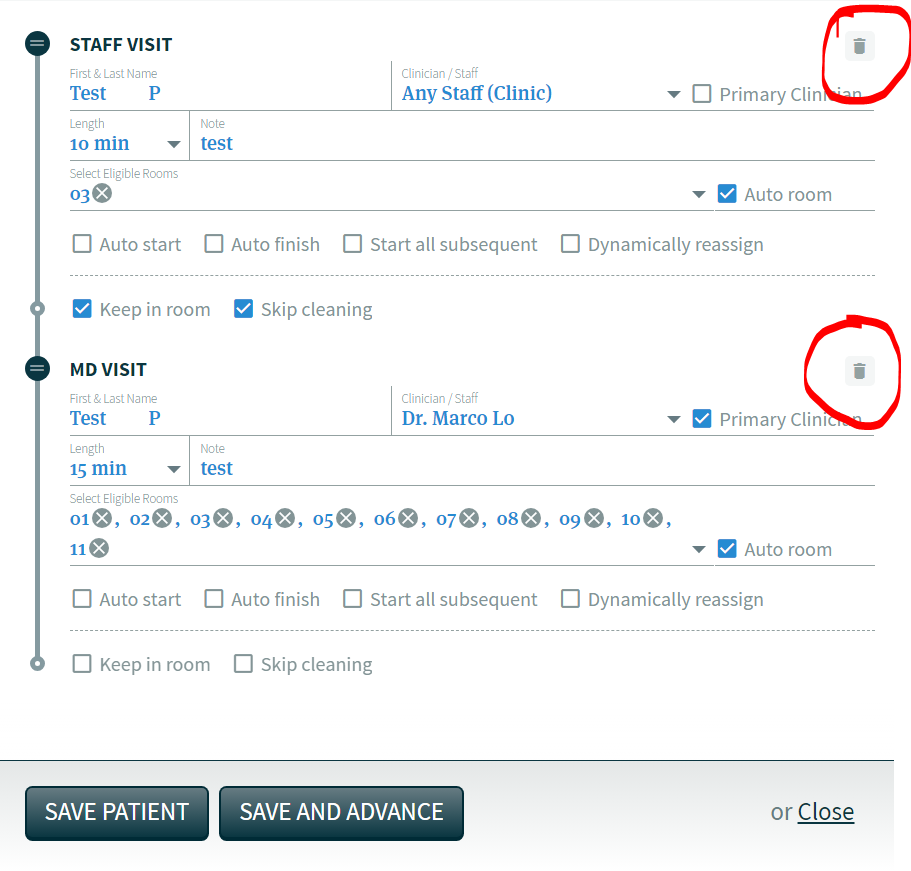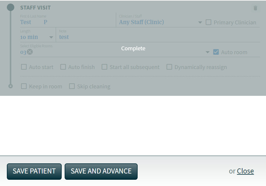 When you’ve removed all of the incomplete visits, the button at the bottom of the popup will either say “Save and Advance” or “Delete Patient.” Either of these options will remove the patient from CHIME.