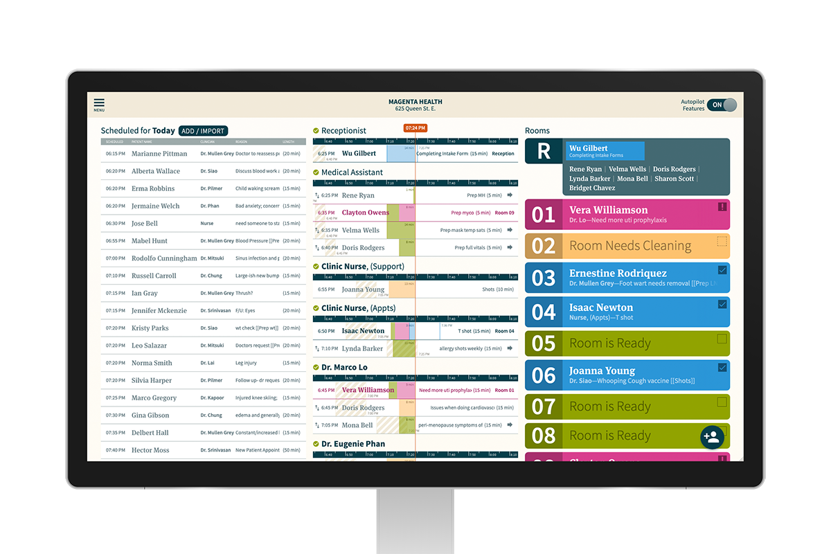 Enable clinicians to check-in and out of appointments, assign tasks on the fly, and update the status of rooms.