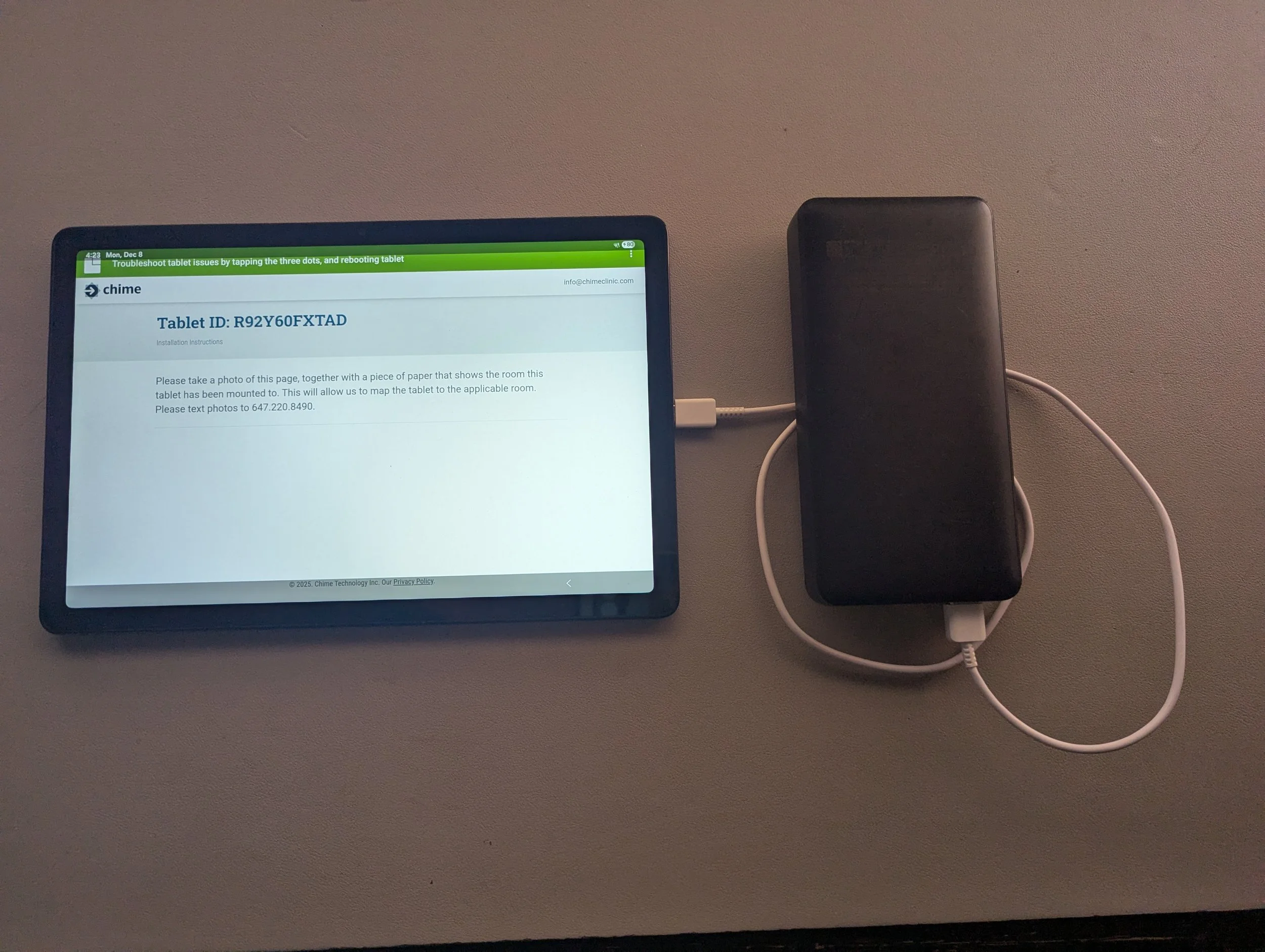 Occasionally a tablet might not stayed powered - if so, CHIME support might ask you to do some preliminary troubleshooting using these instructions.