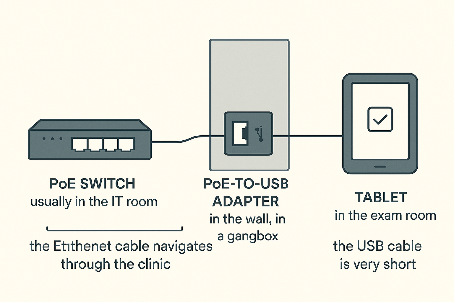 PoE-to-USB Adapter – converts PoE power into 5V USB power for the tablet